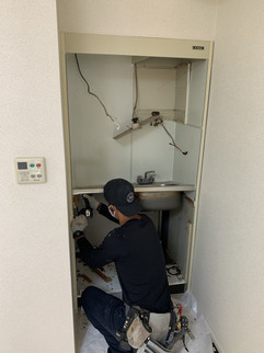 ご購入された1Rタイプのマンションのリフォームとしてダイノックシート工事とあわせて設備周りの工事も行いました。